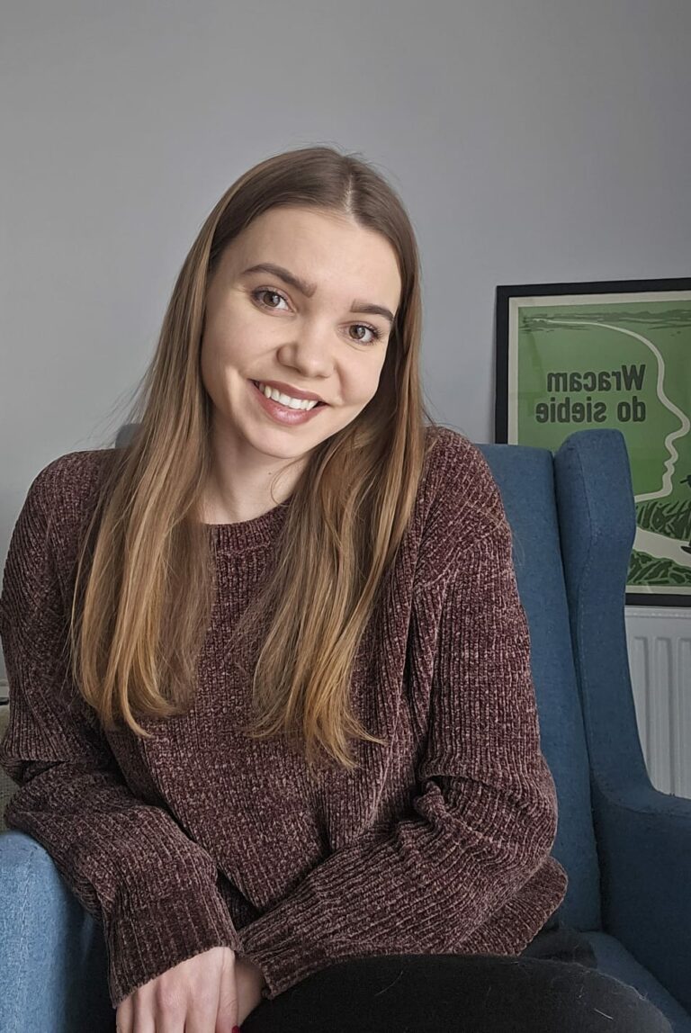 Cześć! Nazywam się Magdalena Stefańczyk. Jestem psycholożką, psychoterapeutką poznawczo-behawioralną w trakcie szkolenia, terapeutką par oraz trenerką umiejętności społecznych.
